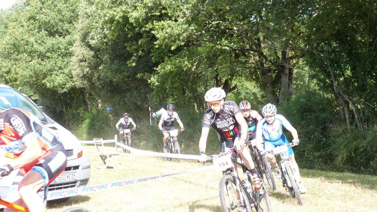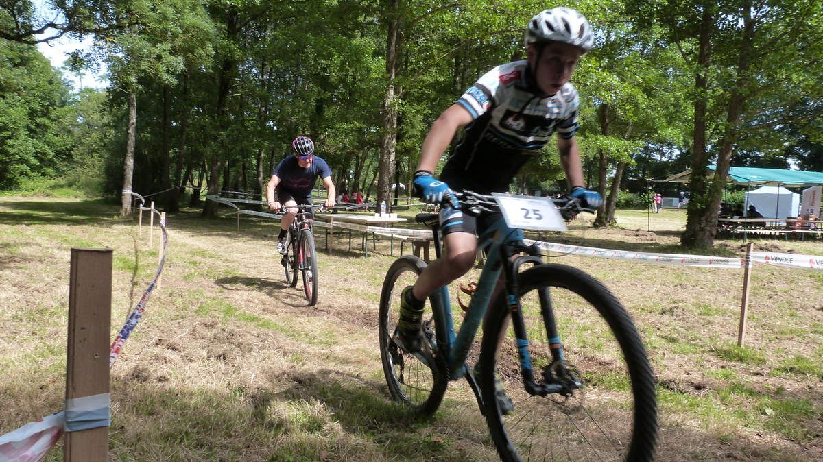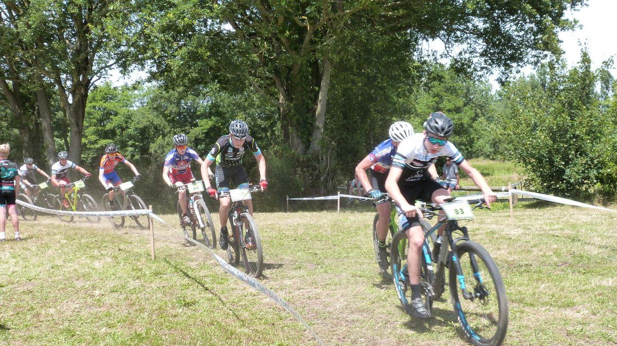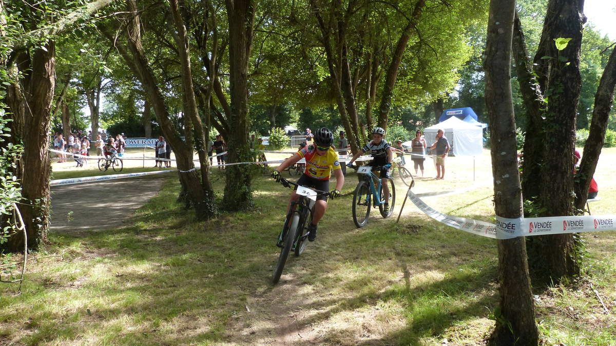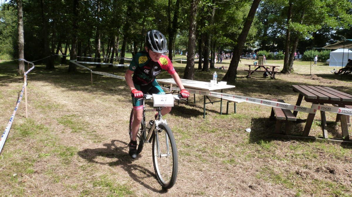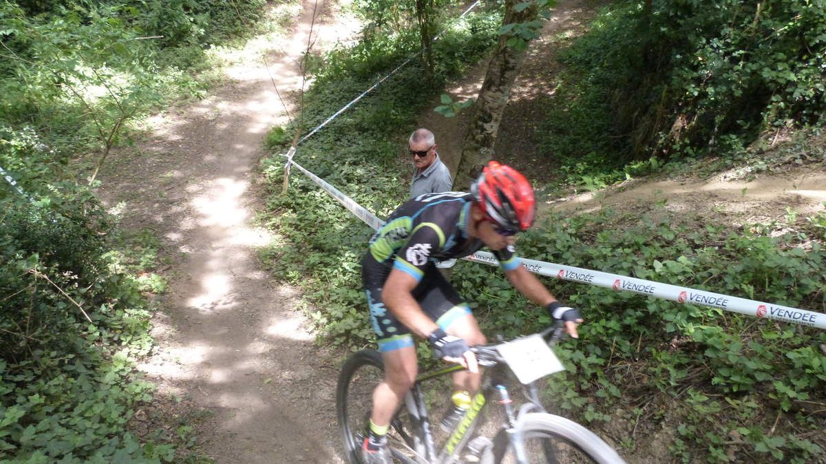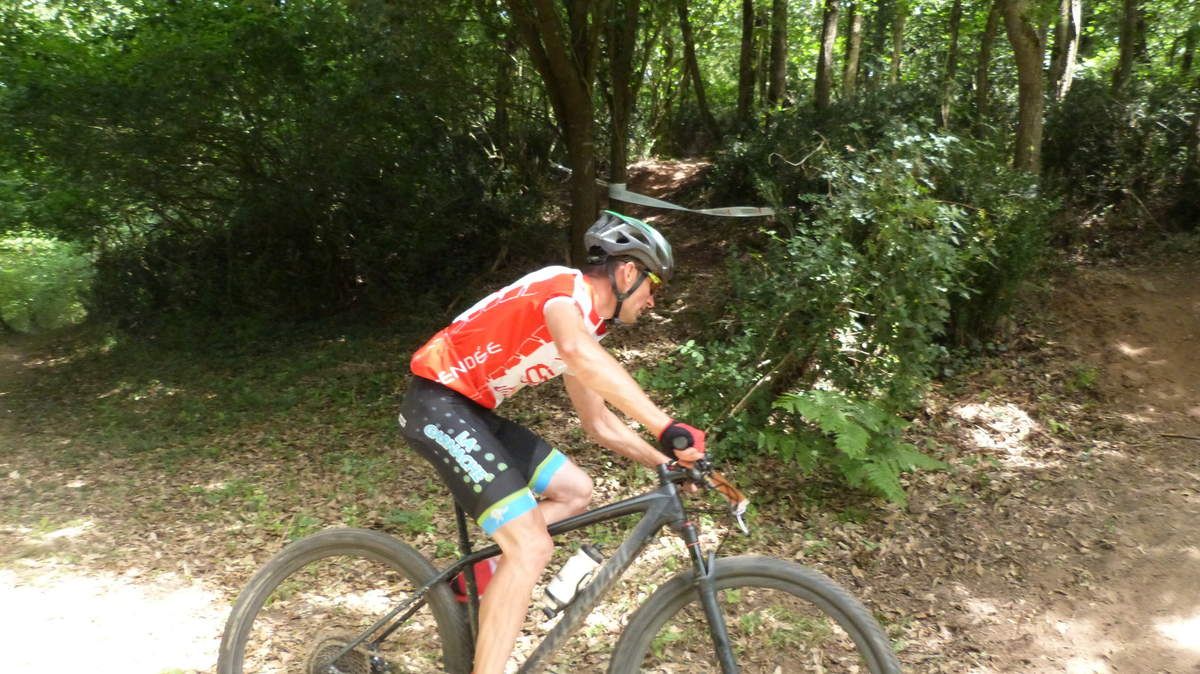 L'avant dernière manche du championnat de Vendée de Vtt Xc Ufolep s'est déroulée ce Dimanche 24 juin sur les côteaux de la Vie à St Maixent. C'est sur ce circuit alliant monotraces pentues en sous bois et larges chemins plats le long de la Vie qu'Anthony RICHARD, leader des Seniors du VCO a décidé de distancer ses plus proches concurrents au général. Il porte 2 attaques au 3è et 5è tours qui portent leurs fruits et lui assurent une 3è place. Laurent DAUTEL déterminé sur cette avant-dernière manche prend la 2è place du podium en vétéran B. Jean Louis VALLEE et Steve PLAIRE accèdent à la 3è marche du podium dans leur catégories respectives. En benjamin, Nolane PLAIRE se maintient à la 2è place et Charles Antoine TRIPON à nouveau 4è sur cette manche. Pour le tandem mixte Gilles POUCLET&Véronique DUBOIS c'est une 4è place, moyeu de roue arrière cassé. François FOURNIER 4è Vc - Gaëtan DURAND 7è Sb, Gildas POUVREAU 8è Va, Maxence GUILLEMONT GUERIN 12è minimes.