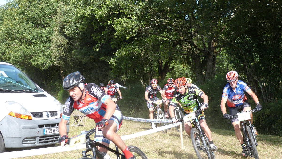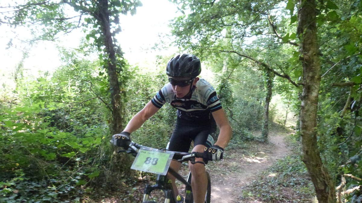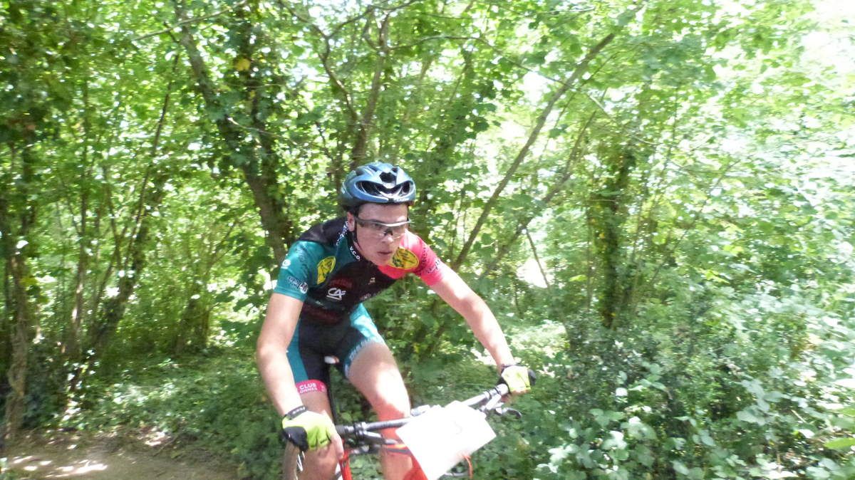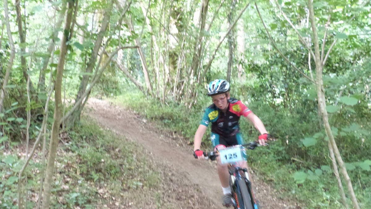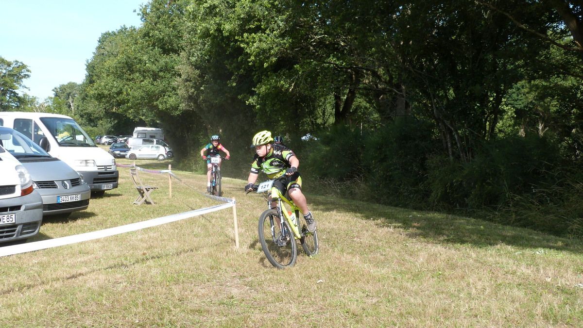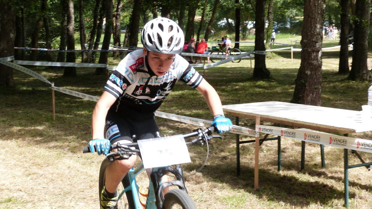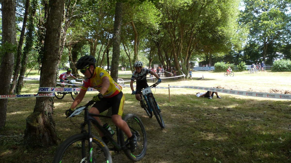L'avant dernière manche du championnat de Vendée de Vtt Xc Ufolep s'est déroulée ce Dimanche 24 juin sur les côteaux de la Vie à St Maixent. C'est sur ce circuit alliant monotraces pentues en sous bois et larges chemins plats le long de la Vie qu'Anthony RICHARD, leader des Seniors du VCO a décidé de distancer ses plus proches concurrents au général. Il porte 2 attaques au 3è et 5è tours qui portent leurs fruits et lui assurent une 3è place. Laurent DAUTEL déterminé sur cette avant-dernière manche prend la 2è place du podium en vétéran B. Jean Louis VALLEE et Steve PLAIRE accèdent à la 3è marche du podium dans leur catégories respectives. En benjamin, Nolane PLAIRE se maintient à la 2è place et Charles Antoine TRIPON à nouveau 4è sur cette manche. Pour le tandem mixte Gilles POUCLET&Véronique DUBOIS c'est une 4è place, moyeu de roue arrière cassé. François FOURNIER 4è Vc - Gaëtan DURAND 7è Sb, Gildas POUVREAU 8è Va, Maxence GUILLEMONT GUERIN 12è minimes.