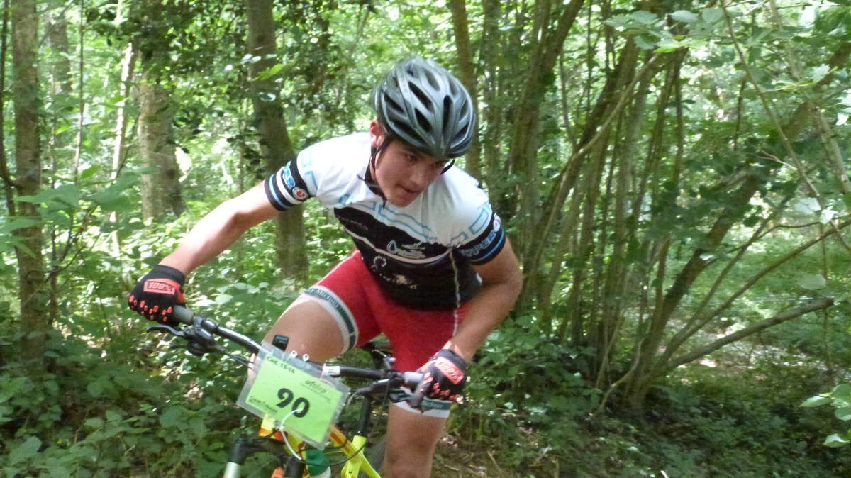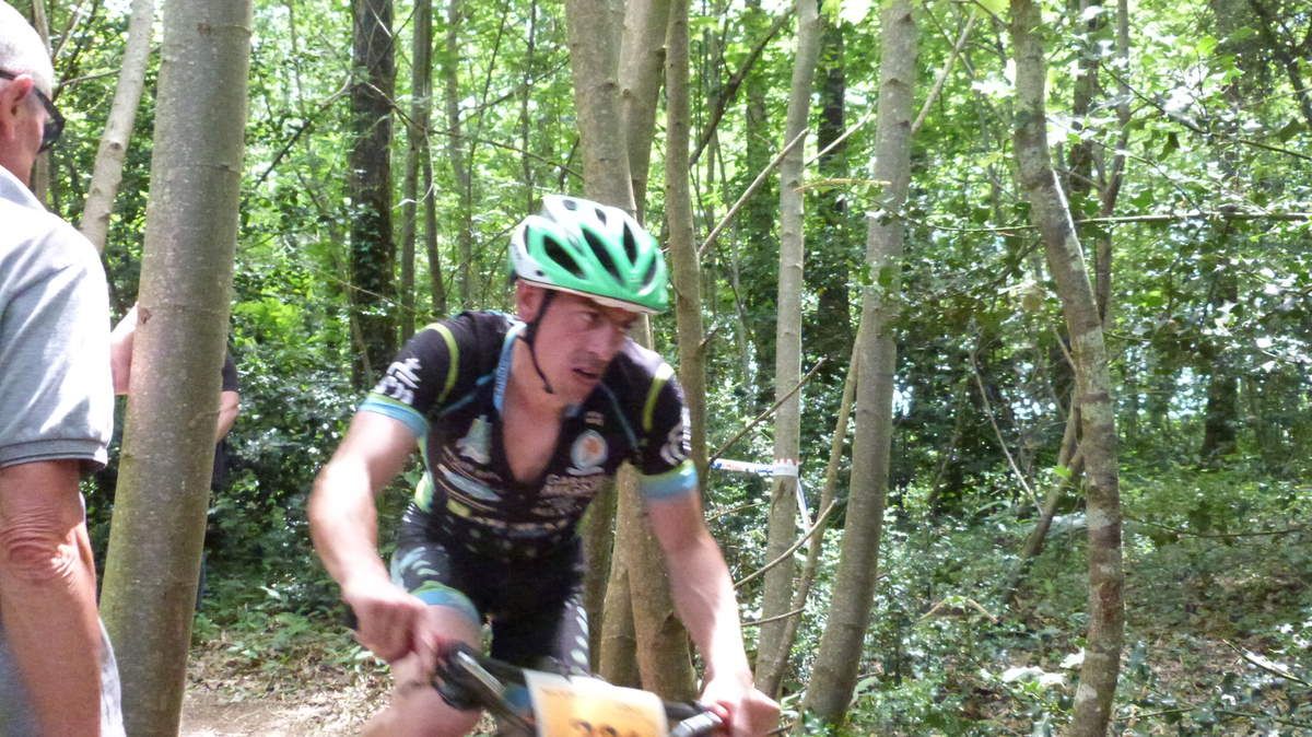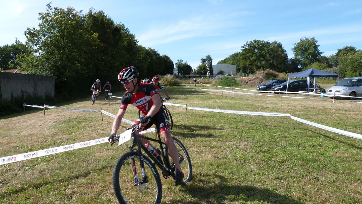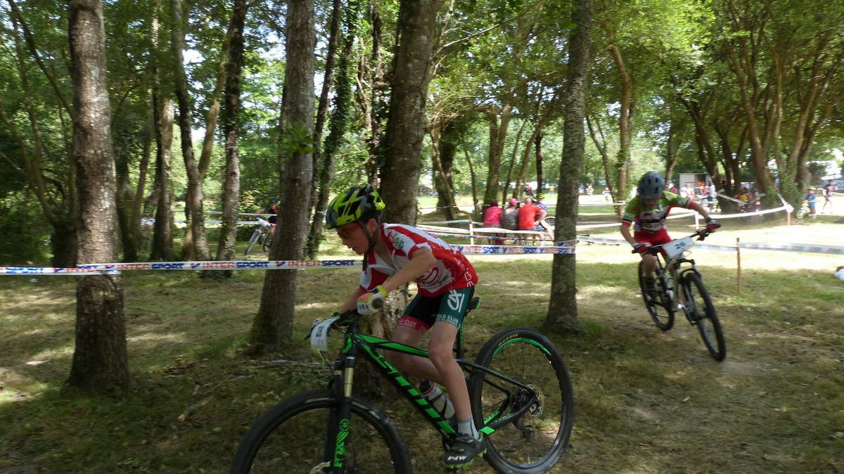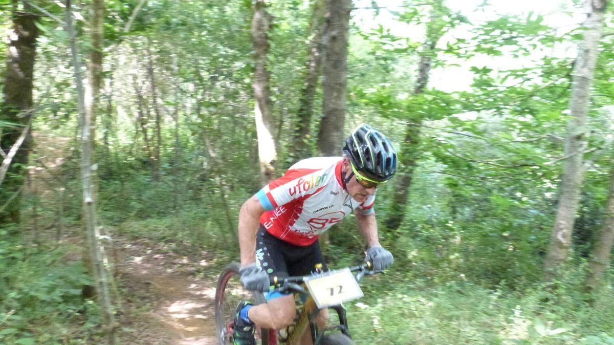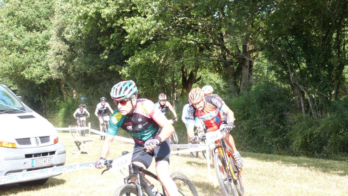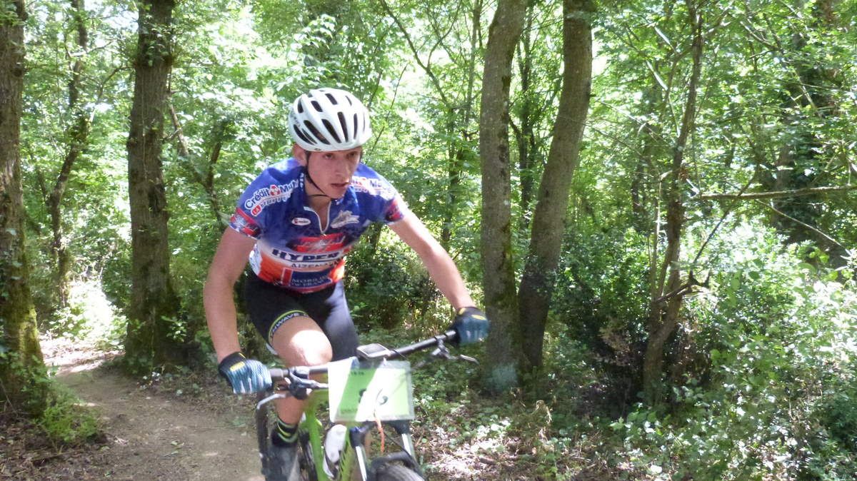 L'avant dernière manche du championnat de Vendée de Vtt Xc Ufolep s'est déroulée ce Dimanche 24 juin sur les côteaux de la Vie à St Maixent. C'est sur ce circuit alliant monotraces pentues en sous bois et larges chemins plats le long de la Vie qu'Anthony RICHARD, leader des Seniors du VCO a décidé de distancer ses plus proches concurrents au général. Il porte 2 attaques au 3è et 5è tours qui portent leurs fruits et lui assurent une 3è place. Laurent DAUTEL déterminé sur cette avant-dernière manche prend la 2è place du podium en vétéran B. Jean Louis VALLEE et Steve PLAIRE accèdent à la 3è marche du podium dans leur catégories respectives. En benjamin, Nolane PLAIRE se maintient à la 2è place et Charles Antoine TRIPON à nouveau 4è sur cette manche. Pour le tandem mixte Gilles POUCLET&Véronique DUBOIS c'est une 4è place, moyeu de roue arrière cassé. François FOURNIER 4è Vc - Gaëtan DURAND 7è Sb, Gildas POUVREAU 8è Va, Maxence GUILLEMONT GUERIN 12è minimes.