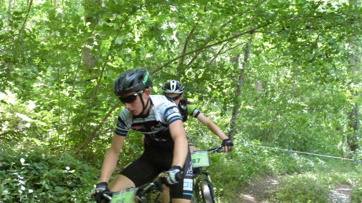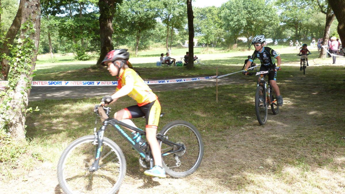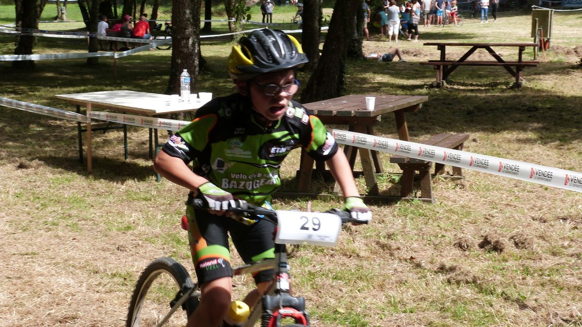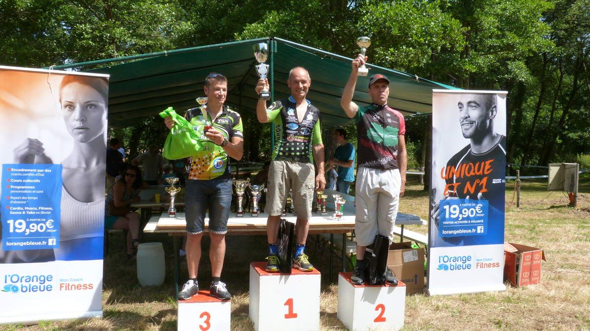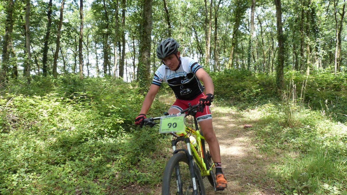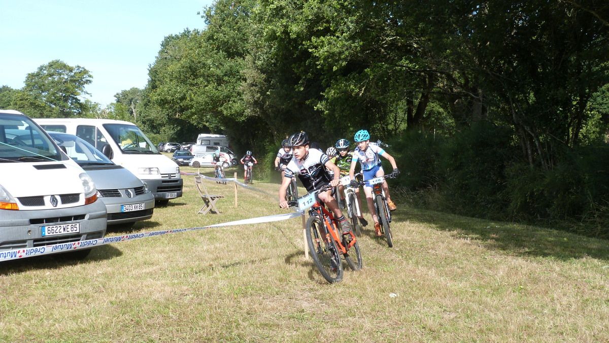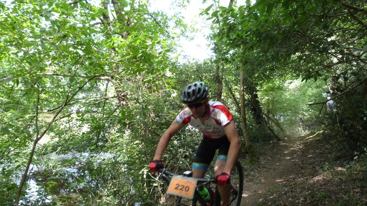L'avant dernière manche du championnat de Vendée de Vtt Xc Ufolep s'est déroulée ce Dimanche 24 juin sur les côteaux de la Vie à St Maixent. C'est sur ce circuit alliant monotraces pentues en sous bois et larges chemins plats le long de la Vie qu'Anthony RICHARD, leader des Seniors du VCO a décidé de distancer ses plus proches concurrents au général. Il porte 2 attaques au 3è et 5è tours qui portent leurs fruits et lui assurent une 3è place. Laurent DAUTEL déterminé sur cette avant-dernière manche prend la 2è place du podium en vétéran B. Jean Louis VALLEE et Steve PLAIRE accèdent à la 3è marche du podium dans leur catégories respectives. En benjamin, Nolane PLAIRE se maintient à la 2è place et Charles Antoine TRIPON à nouveau 4è sur cette manche. Pour le tandem mixte Gilles POUCLET&Véronique DUBOIS c'est une 4è place, moyeu de roue arrière cassé. François FOURNIER 4è Vc - Gaëtan DURAND 7è Sb, Gildas POUVREAU 8è Va, Maxence GUILLEMONT GUERIN 12è minimes.