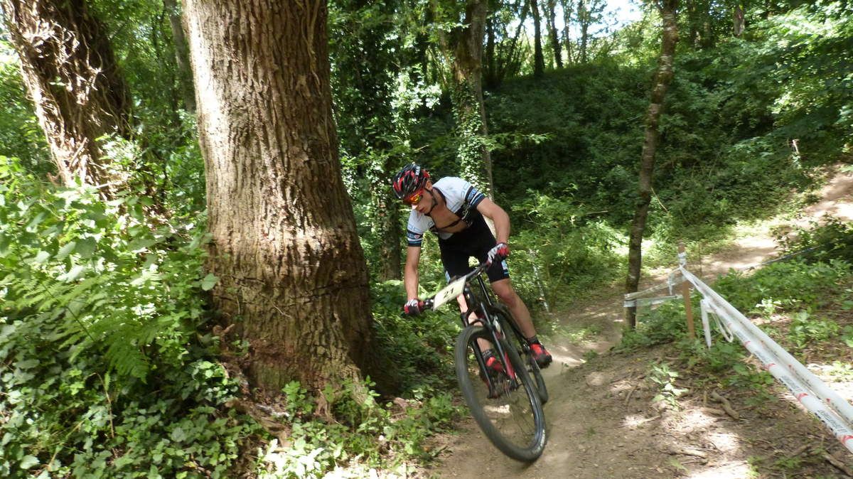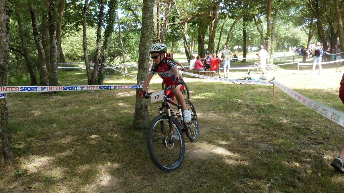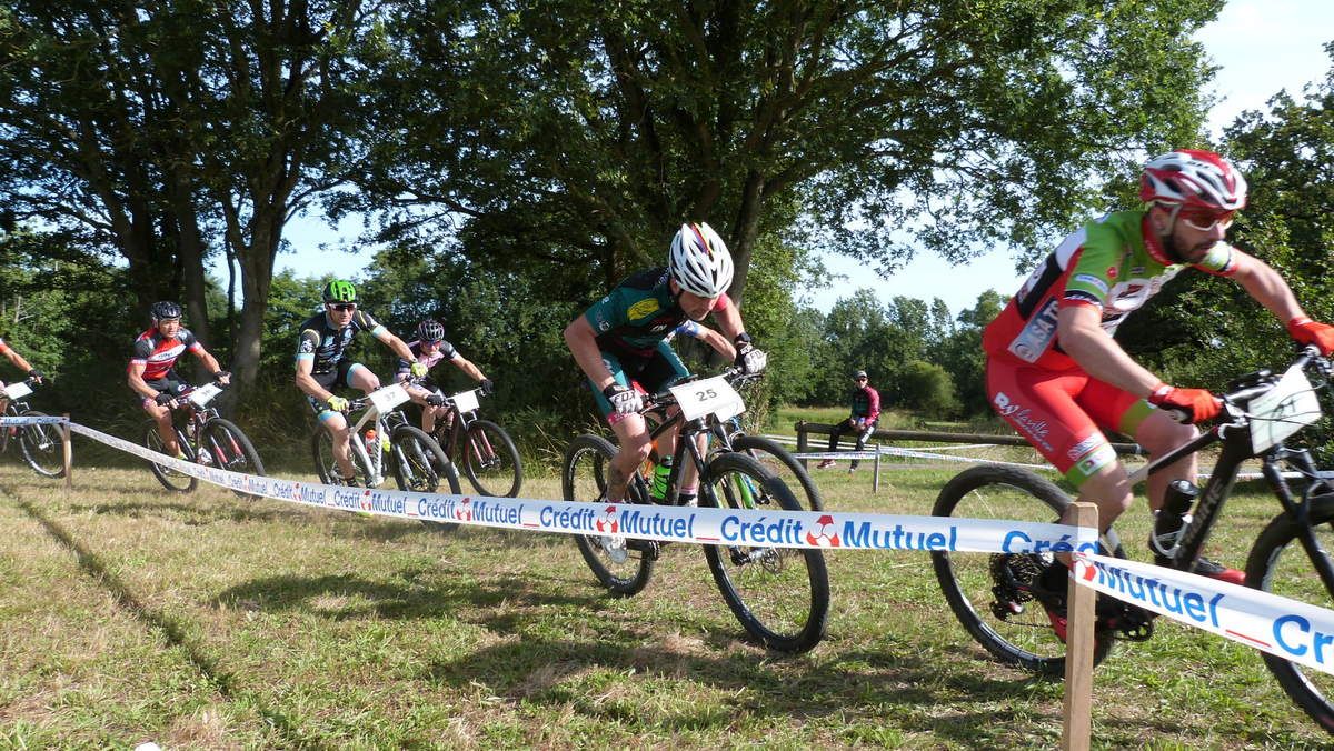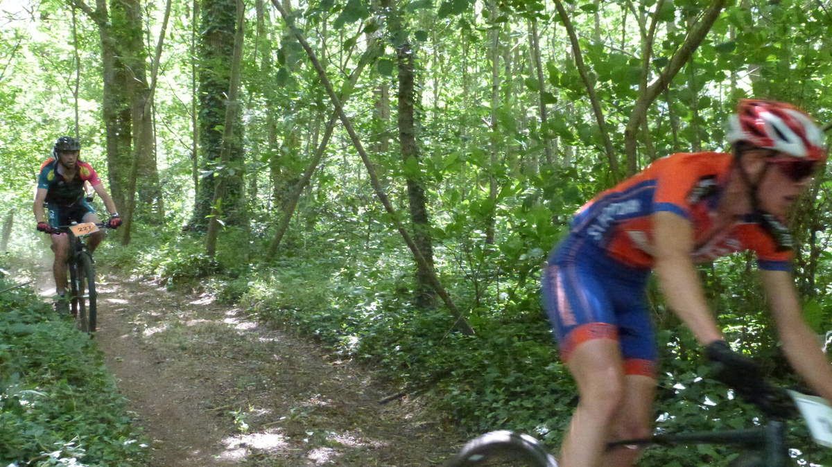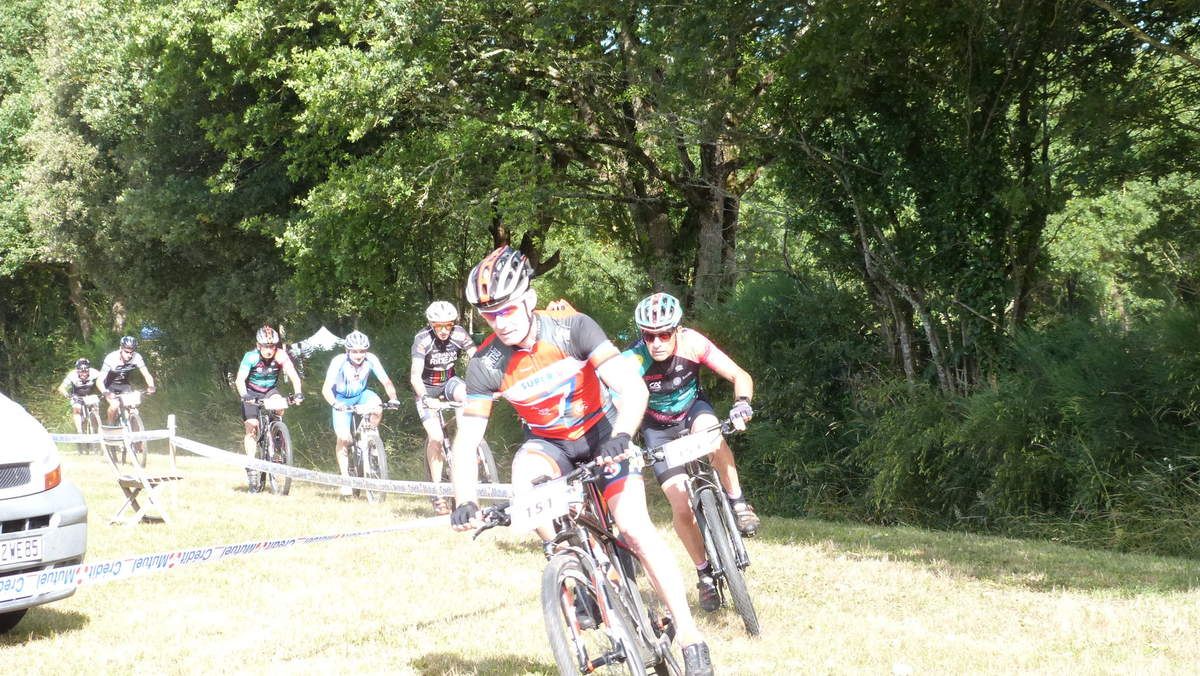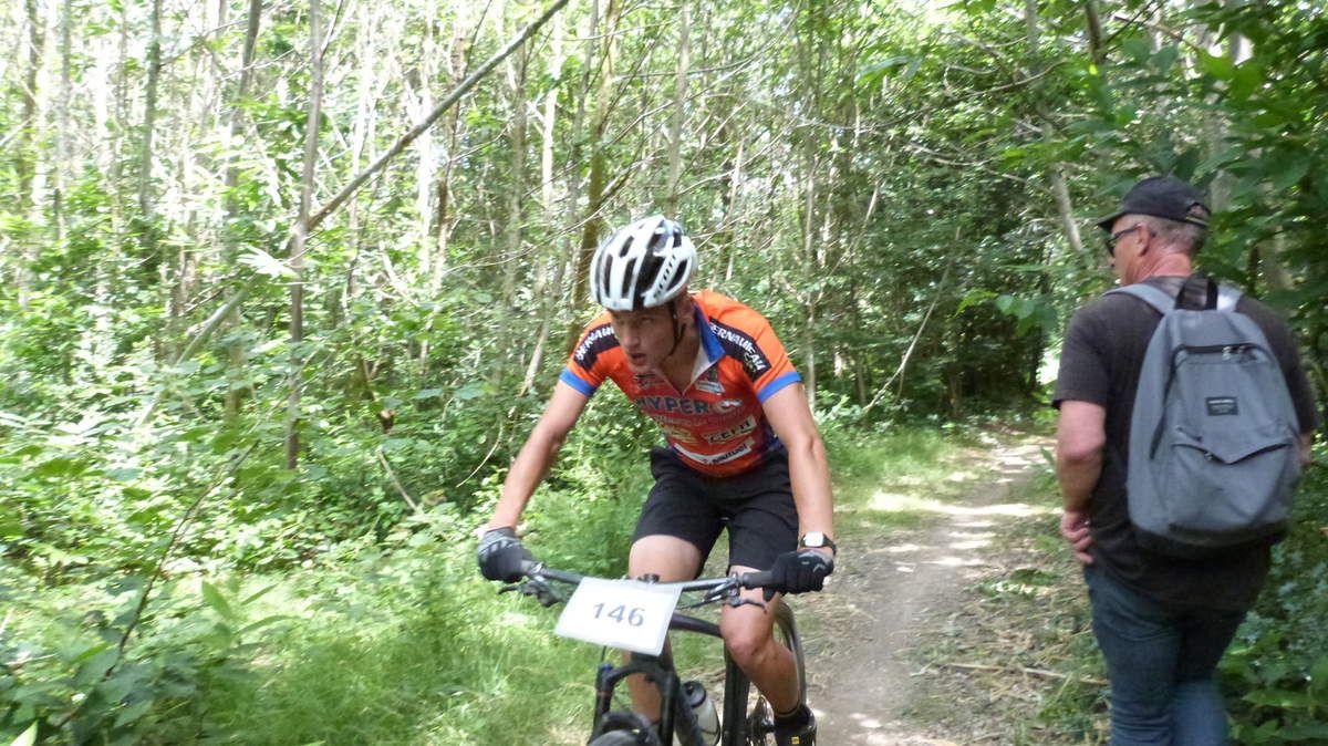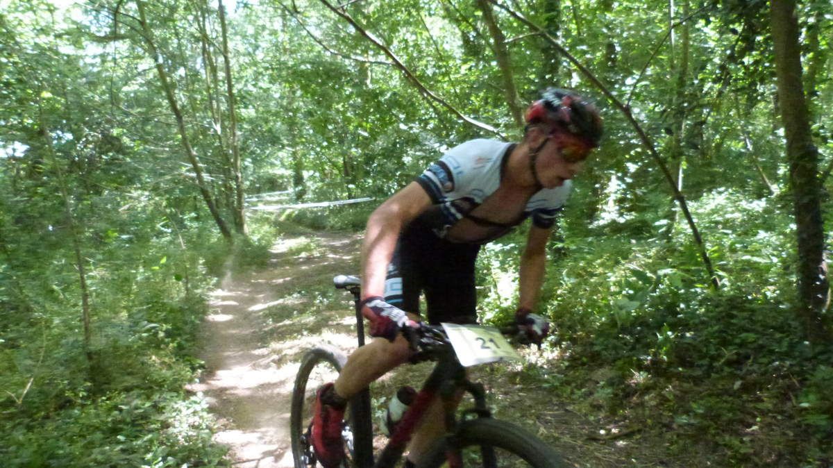 L'avant dernière manche du championnat de Vendée de Vtt Xc Ufolep s'est déroulée ce Dimanche 24 juin sur les côteaux de la Vie à St Maixent. C'est sur ce circuit alliant monotraces pentues en sous bois et larges chemins plats le long de la Vie qu'Anthony RICHARD, leader des Seniors du VCO a décidé de distancer ses plus proches concurrents au général. Il porte 2 attaques au 3è et 5è tours qui portent leurs fruits et lui assurent une 3è place. Laurent DAUTEL déterminé sur cette avant-dernière manche prend la 2è place du podium en vétéran B. Jean Louis VALLEE et Steve PLAIRE accèdent à la 3è marche du podium dans leur catégories respectives. En benjamin, Nolane PLAIRE se maintient à la 2è place et Charles Antoine TRIPON à nouveau 4è sur cette manche. Pour le tandem mixte Gilles POUCLET&Véronique DUBOIS c'est une 4è place, moyeu de roue arrière cassé. François FOURNIER 4è Vc - Gaëtan DURAND 7è Sb, Gildas POUVREAU 8è Va, Maxence GUILLEMONT GUERIN 12è minimes.