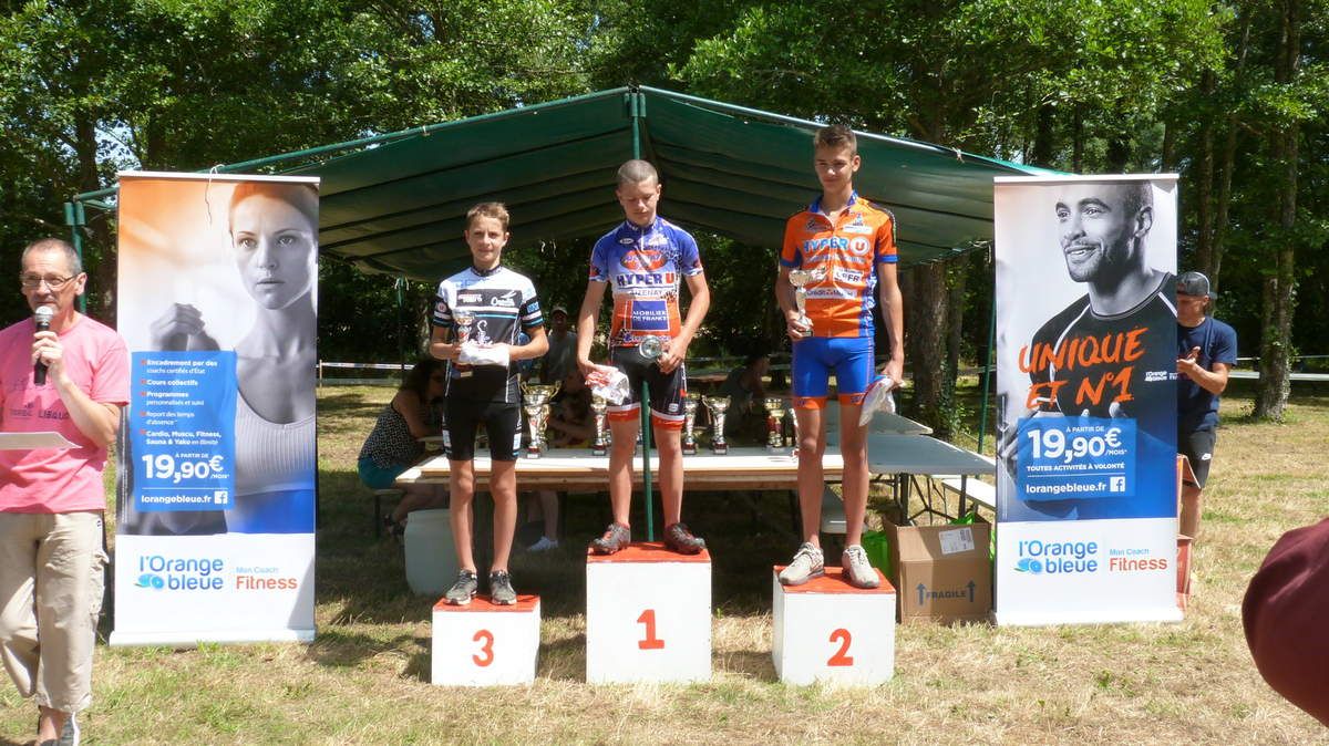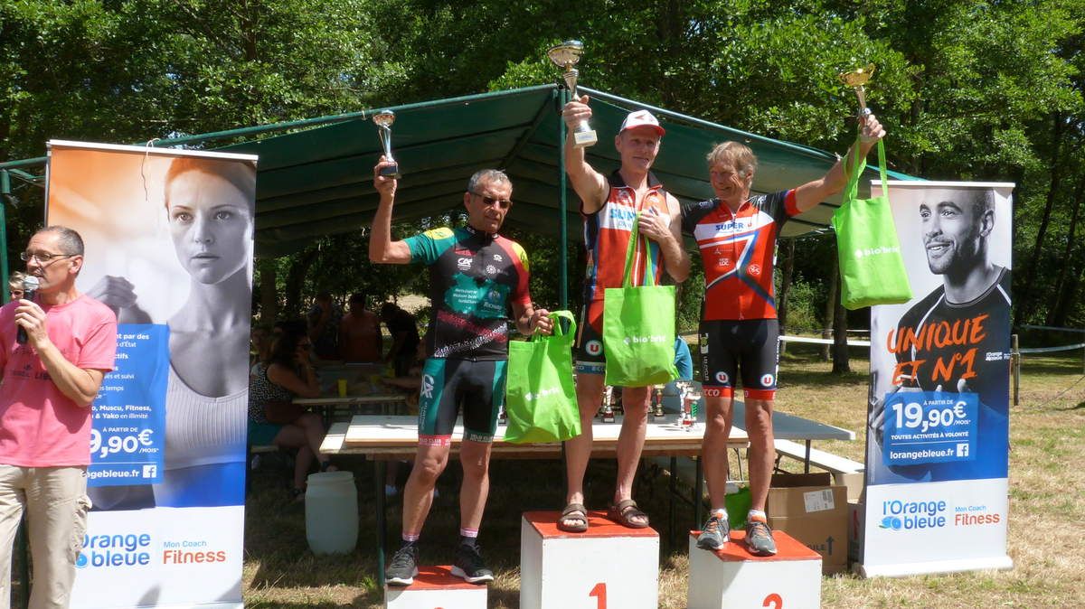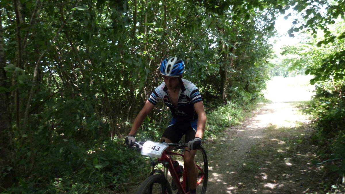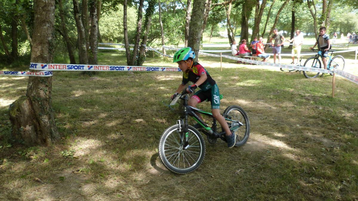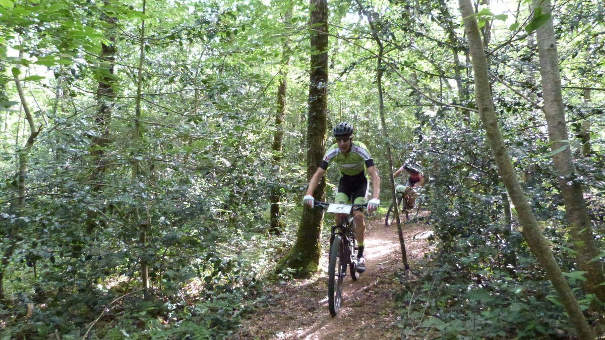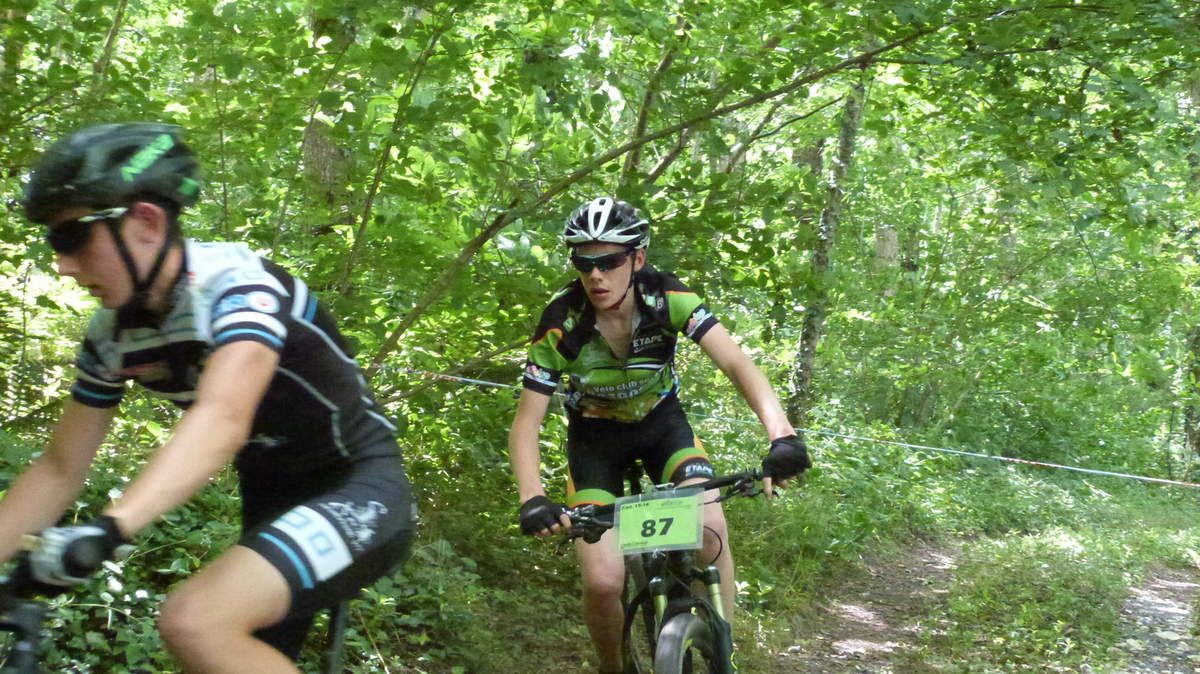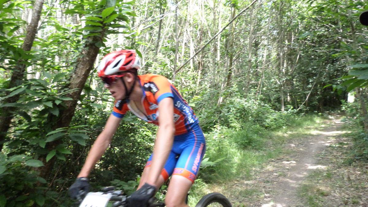 L'avant dernière manche du championnat de Vendée de Vtt Xc Ufolep s'est déroulée ce Dimanche 24 juin sur les côteaux de la Vie à St Maixent. C'est sur ce circuit alliant monotraces pentues en sous bois et larges chemins plats le long de la Vie qu'Anthony RICHARD, leader des Seniors du VCO a décidé de distancer ses plus proches concurrents au général. Il porte 2 attaques au 3è et 5è tours qui portent leurs fruits et lui assurent une 3è place. Laurent DAUTEL déterminé sur cette avant-dernière manche prend la 2è place du podium en vétéran B. Jean Louis VALLEE et Steve PLAIRE accèdent à la 3è marche du podium dans leur catégories respectives. En benjamin, Nolane PLAIRE se maintient à la 2è place et Charles Antoine TRIPON à nouveau 4è sur cette manche. Pour le tandem mixte Gilles POUCLET&Véronique DUBOIS c'est une 4è place, moyeu de roue arrière cassé. François FOURNIER 4è Vc - Gaëtan DURAND 7è Sb, Gildas POUVREAU 8è Va, Maxence GUILLEMONT GUERIN 12è minimes.